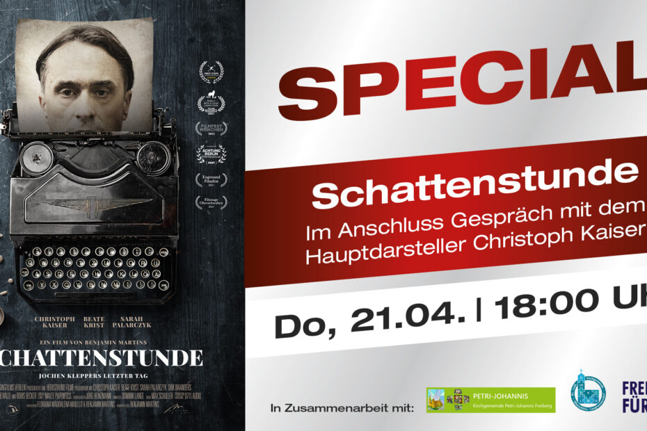 Im 70. Todesjahr von Jochen Klepper widmet sich der Film „Schattenstunde“ der letzte Phase von Kleppers Leben im Nationalsozialismus. Im Anschluss an den Film gibt es ein Gespräch mit Hauptdarsteller Christoph Kaiser.