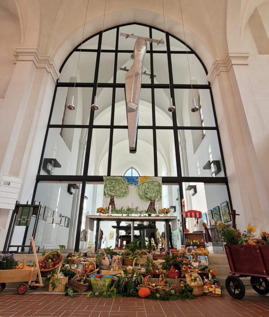 Heute haben wir einen wunderbaren Erntedank-Familiengottesdienst gefeiert, und Gott für die reiche Ernte gedankt und für all das, was unser Leben schön macht. Die Kinder haben im Anspiel als Raben der Gemeinde sehr eindrucksvoll dargestellt, wie wichtig Teilen ist – für die Gemeinschaft, wie für einen selbst. Und wir haben erfahren, dass Teilen einen Anfang macht, um wieder mehr Frieden in der Welt zu stiften.