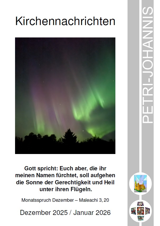 Die Kirchennachrichten für Dezember und Januar sind da. Viele Veranstaltungen freuen sich auf Ihren Besuch im Advent, an Weihnachten und im Neuen Jahr. Taizé-Andachten, Christliches Yoga sind ebenso mit dabei wie Konzerte, Gospel und Krippenspiele. Ganz besonders möchte ich auf den Sächsischen Hauskreistag hinweisen, der dieses Mal in Freiberg in der Petrikirche stattfindet und der Ausblick auf die Kinderbibeltage in den Winterferien und die nächste Gemeindefreizeit am Himmelfahrtswochenende.